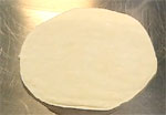 Берем слоеное тесто, раскатаем его в тонкий круг и охладим. Тесто обязательно должно быть охлажденным, чем холоднее, тем лучше. Прокалываем его вилкой.