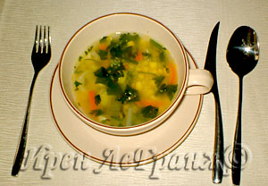 Затем добавила кукурузу и варила еще 3 минуты, а потом добавила зелень, сок лимона, соль и перец.